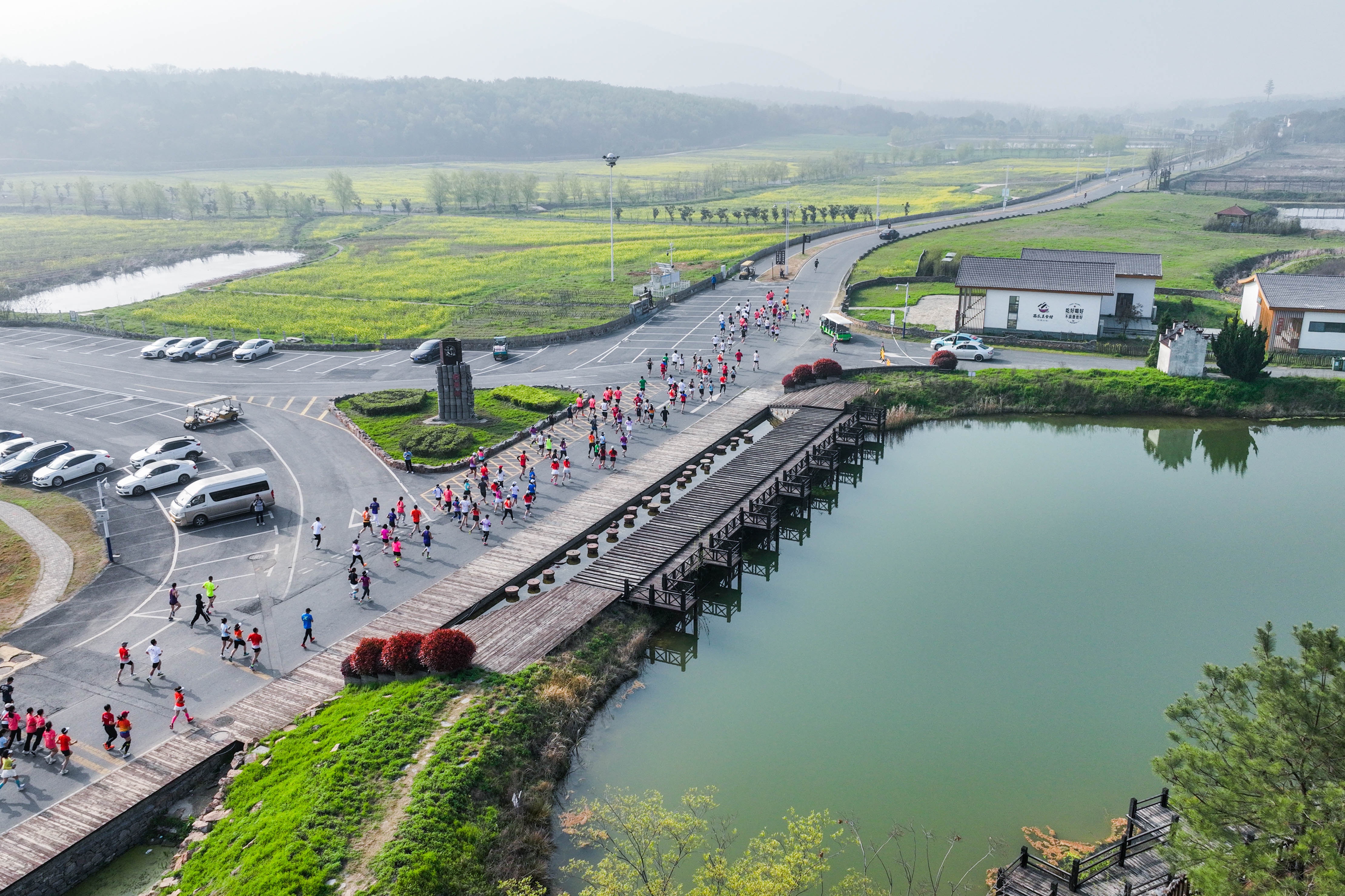 赛道起终点设于打谷场,穿越三瓜公社,途经郁金香高地、大风湾水库、经纬度航空教育基地等景点。参赛选手们相聚在风景如画的半汤度假区,一路奔跑,赏郁金香花海,观原野秀丽风景,在自然中洗净都市喧嚣。同时,选手们在画里奔跑,形成一道亮丽的快乐健身风景线,为春日的半汤带来了人气。