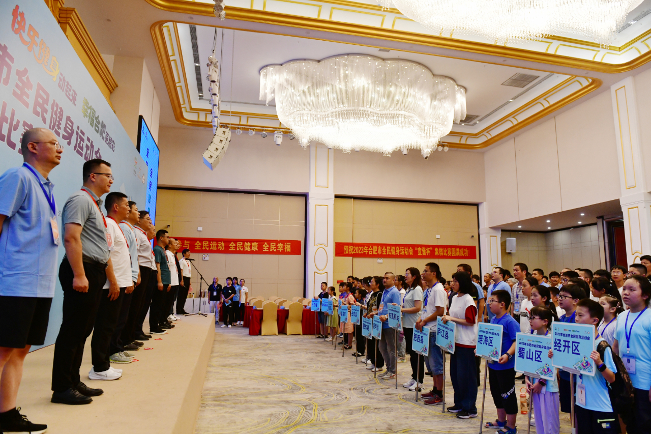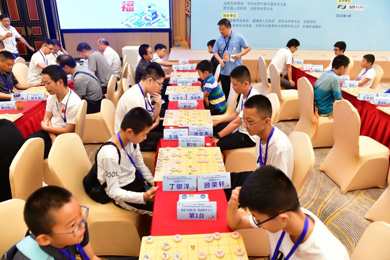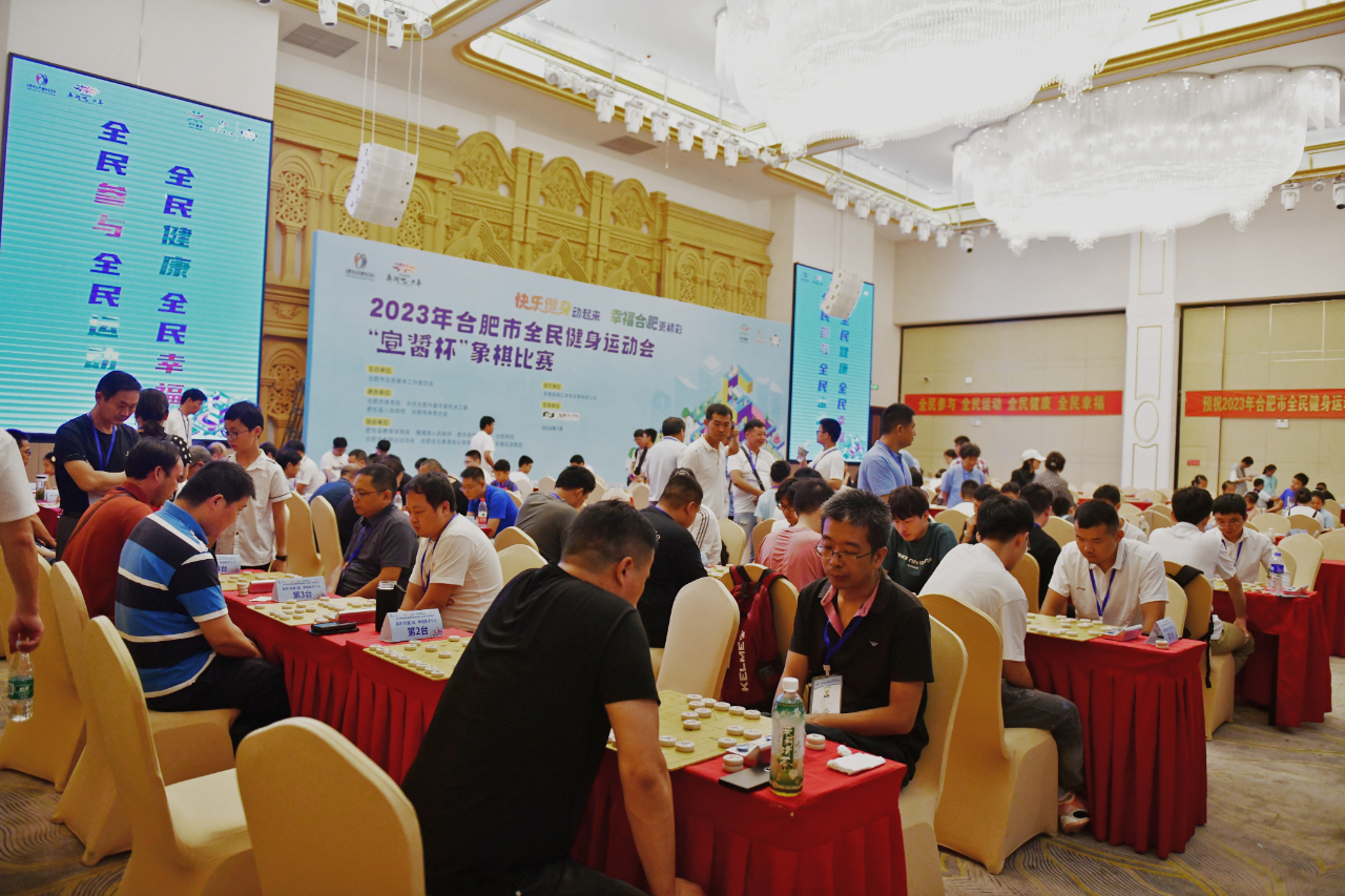 7月8日,2023年合肥市全民健身运动会象棋比赛在撮街精彩开赛,吸引了来自市直机关和12个县(市)区、开发区代表队以及社会公开报名的近200名棋友前来一较高下。