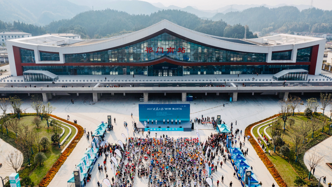 “祁”山秀水,“骑”行天下。10月29日,2023“皖美山水”骑行赛·黄山祁门站在祁门高铁南站鸣枪开赛。