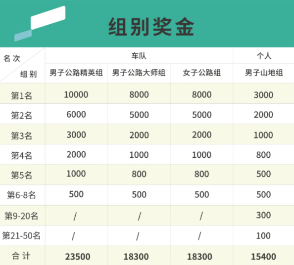 备注:比赛奖金采用银行卡转账方式进行发放,车队组别的奖金将在赛后7个工作日内转入各参赛车队队长指定银行账户,由队长进行分配;个人组别的奖金将在赛后7个工作日内转入本人银行账户。按照国家税法规定,所有奖金将由组委会代扣代缴20%个人所得税。