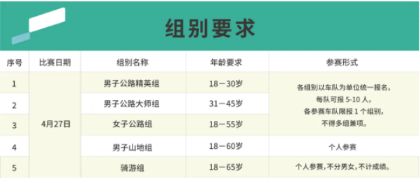 2024“中国·皖美山水”骑行赛·安庆滨江站共设置4个竞赛组和1个骑游组,具体形式如下: