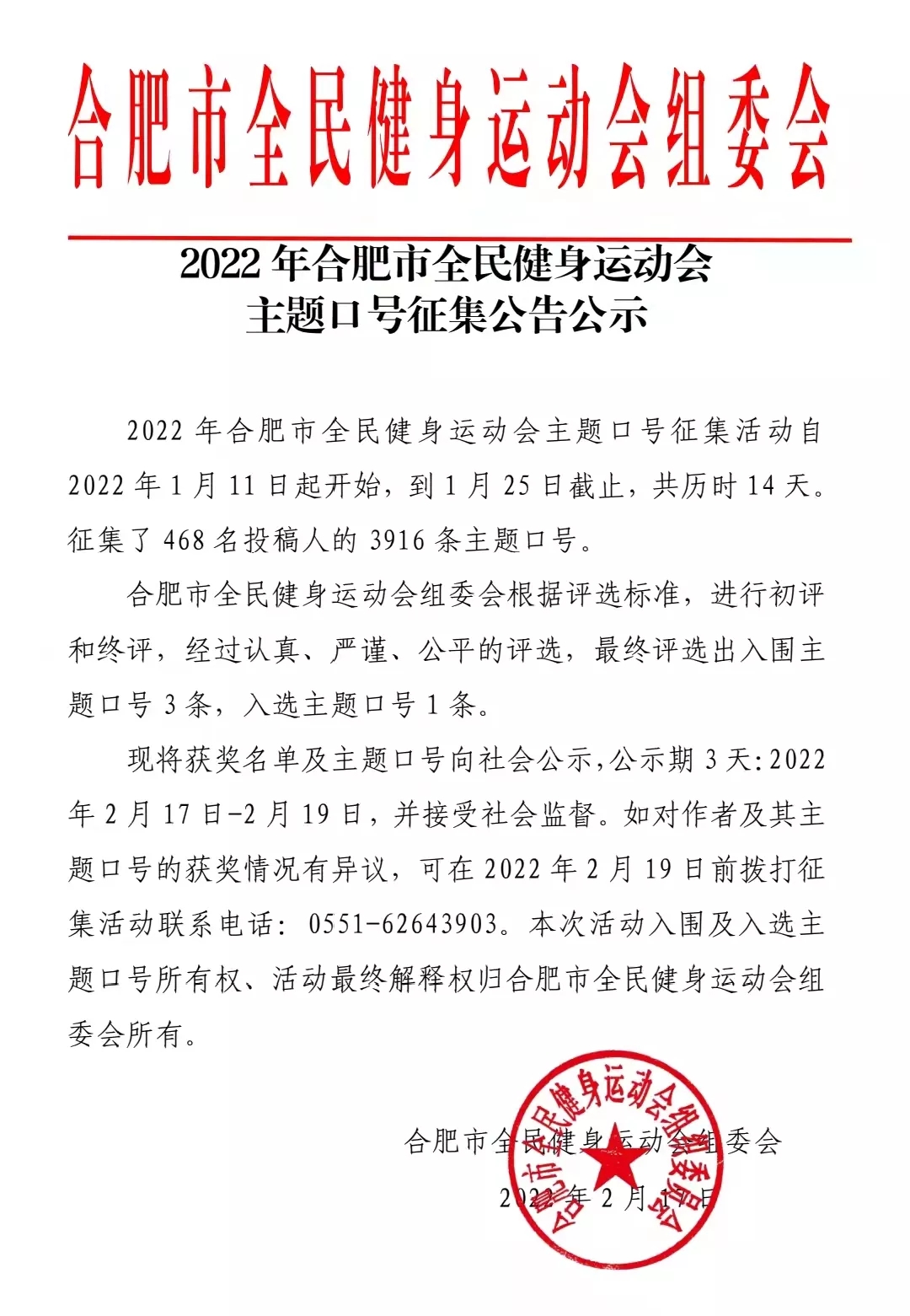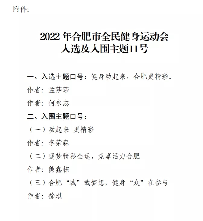 2022年合肥市全民健身运动会主题口号征集公告公示