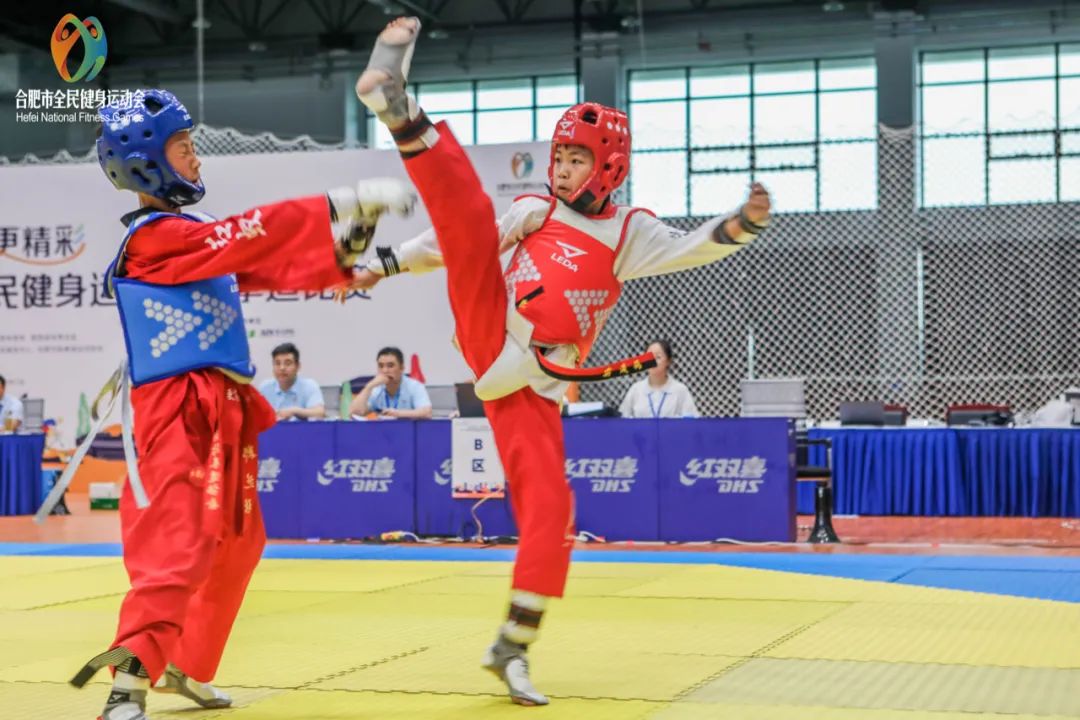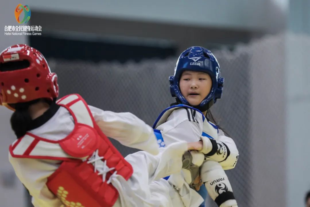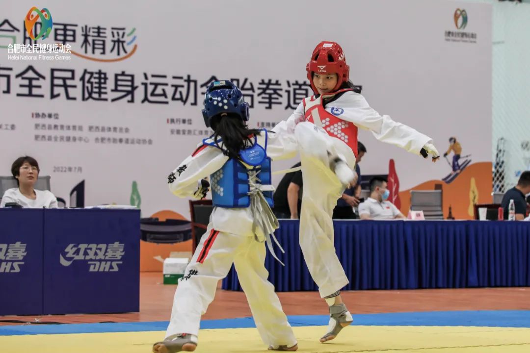 “下劈、勾踢、攻他左边!”7月28日-29日,在肥西全民健身中心举行的2022年合肥市全民健身运动会跆拳道比赛一场场对决赢得现场观众阵阵掌声。