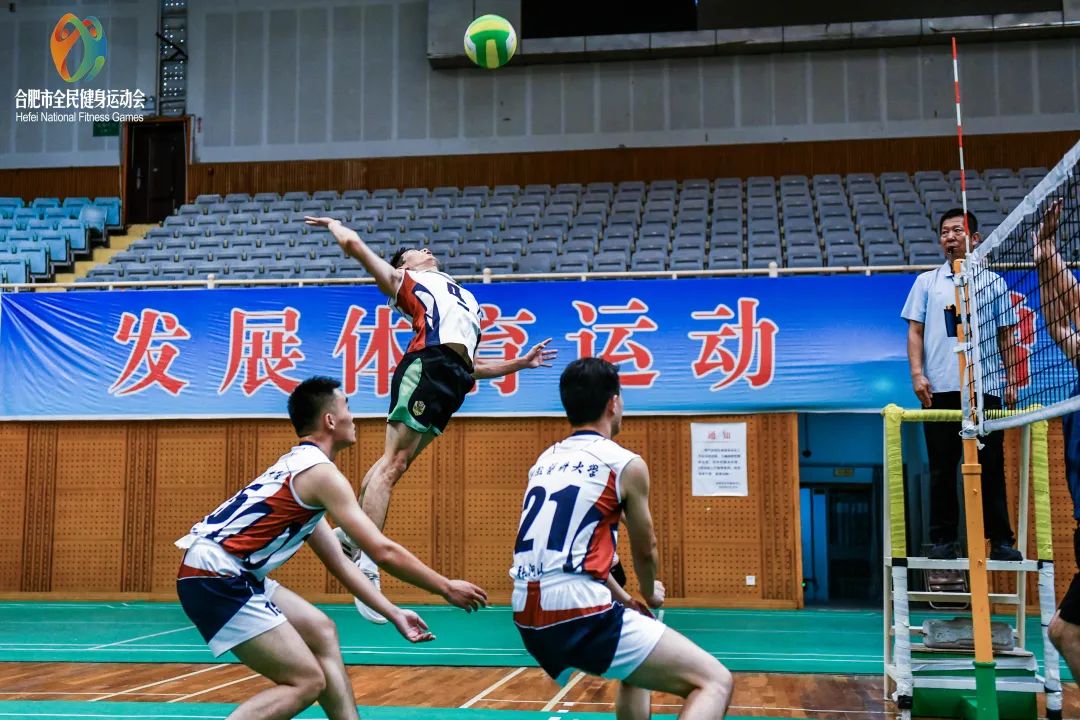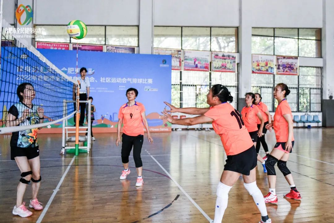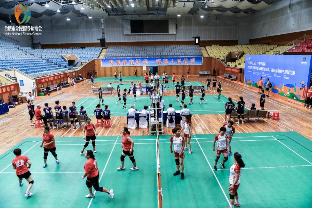 9月18日,2022年合肥市全民健身运动会气排球邀请赛第一阶段在合肥市体育馆收官。来自公开组的16支代表队和县区组女子甲组的7支代表队近300名气排球运动爱好者相互切磋,展示气排球运动的魅力与激情。