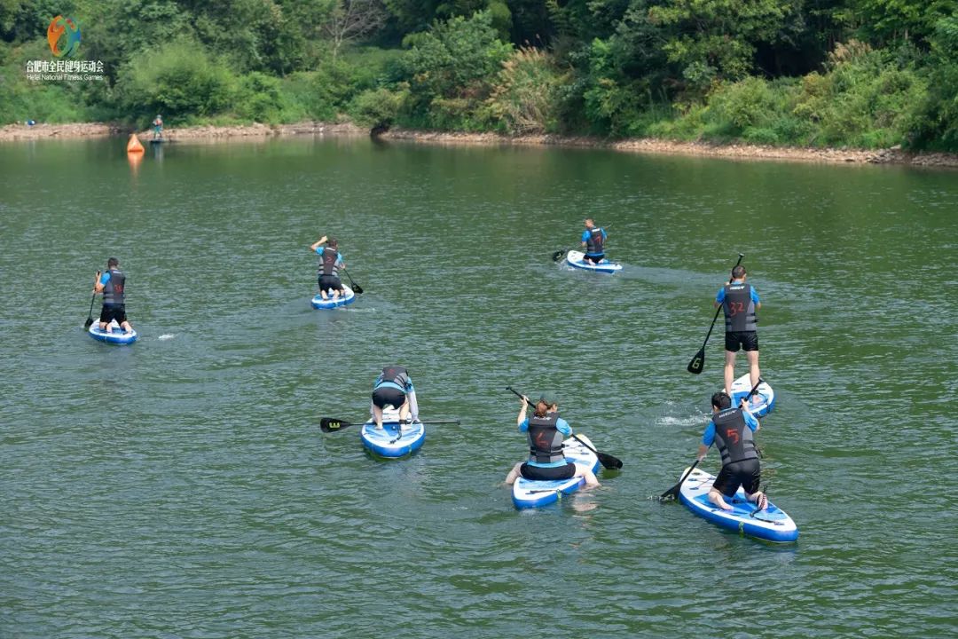嬉戏桨板逐浪,怡情湖光山色。风靡全球的网红户外水上休闲运动桨板项目在庐江走出第一步,为秀美清丽的虎洞水库激荡起盎然水趣,也为合肥市全民健身运动会“体育+生态”的探索注入新的活力。