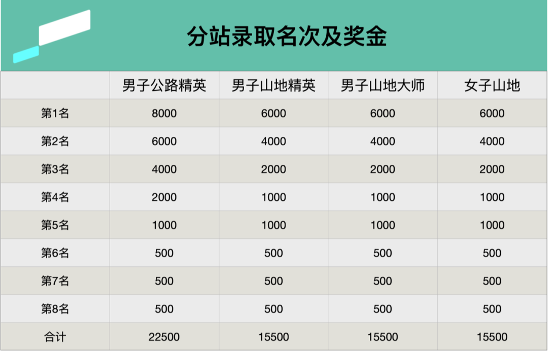 (三)本站前八名将获得:10、8、6、5、4、3、2、1 的年度积分,全年总积分排名前 5 名的车队,颁发奖金、奖杯及荣誉证书,6 至 8 名颁发奖杯、荣誉证书。具体奖金如下:总金额:99000元。